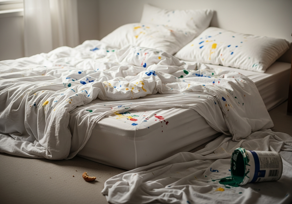 Paint stains (especially from acrylic or latex paints) can be a nightmare to remove, but it’s easier than you think. First, scrape off any excess paint gently with a dull knife. Then, apply a solvent such as paint thinner or acetone to the stain. Be sure to test on a small hidden area first to avoid damaging the fabric. Rinse with cold water and wash according to fabric instructions.