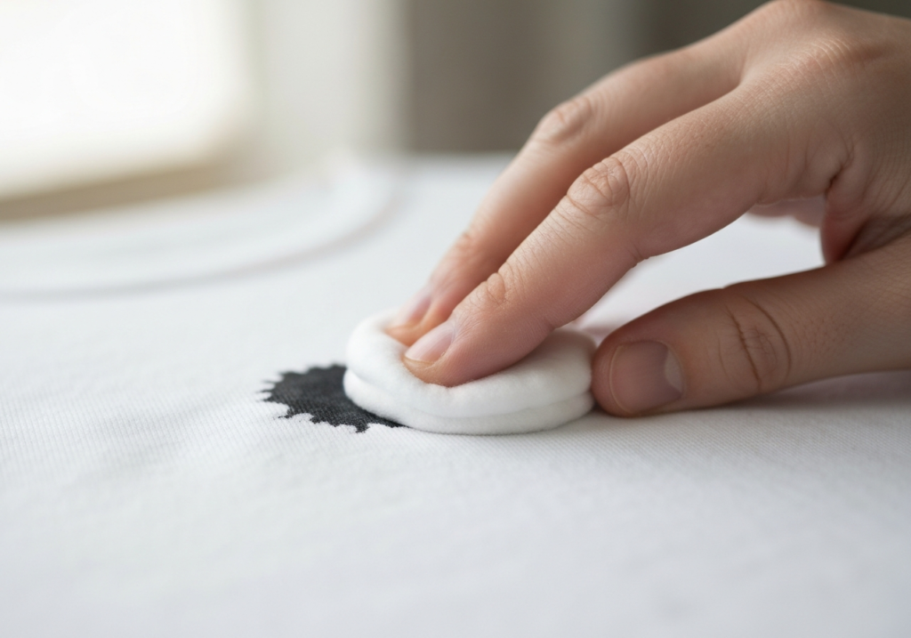 Start by blotting the stain with rubbing alcohol or hand sanitizer (which contains alcohol). Apply a small amount to a cotton ball and gently press it onto the ink stain. Once the ink begins to lift, rinse the area with cold water. Repeat the process until the stain is gone, then wash as usual.