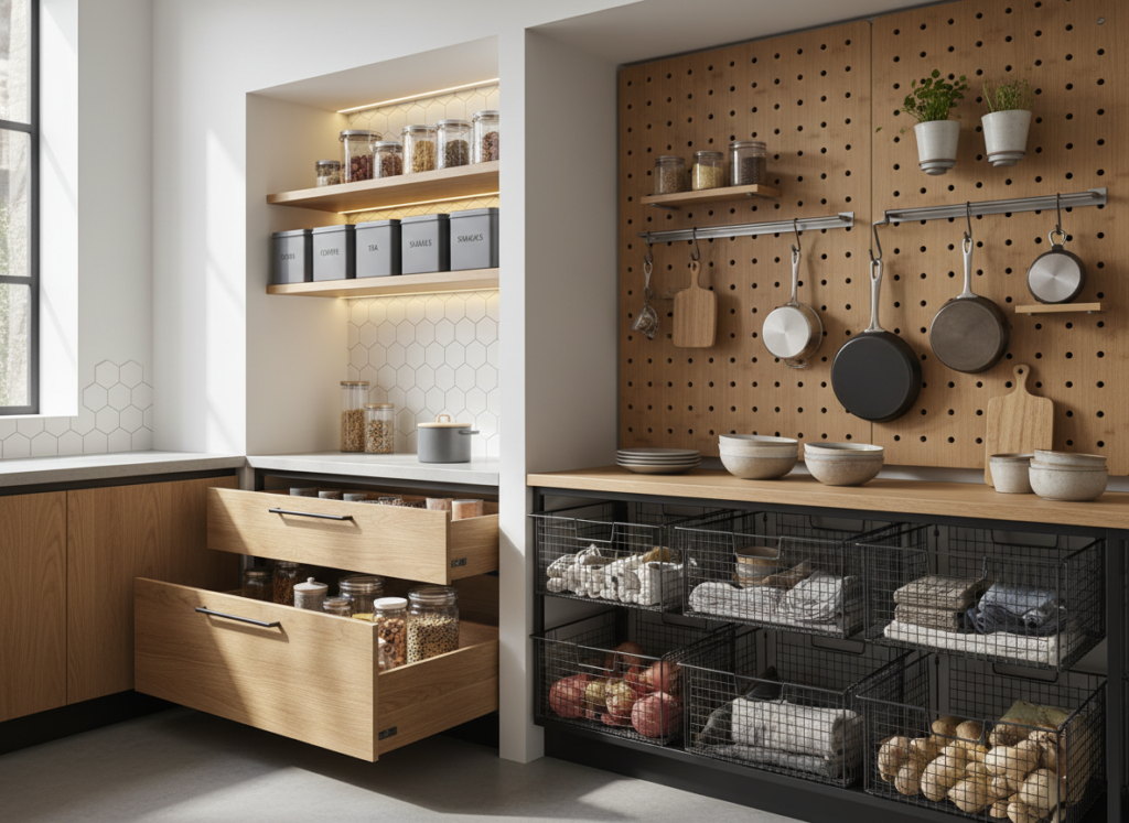 When floor space is limited, vertical storage becomes your best friend. The goal is to use walls efficiently while keeping the room visually calm.