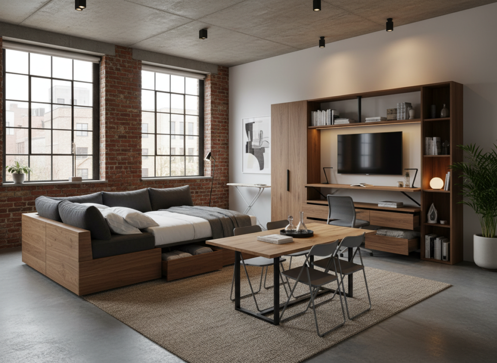 Try not to overdo it. Too many transformer-style items can make the apartment feel temporary. Choose a few high-impact multifunctional pieces and keep the rest simple.