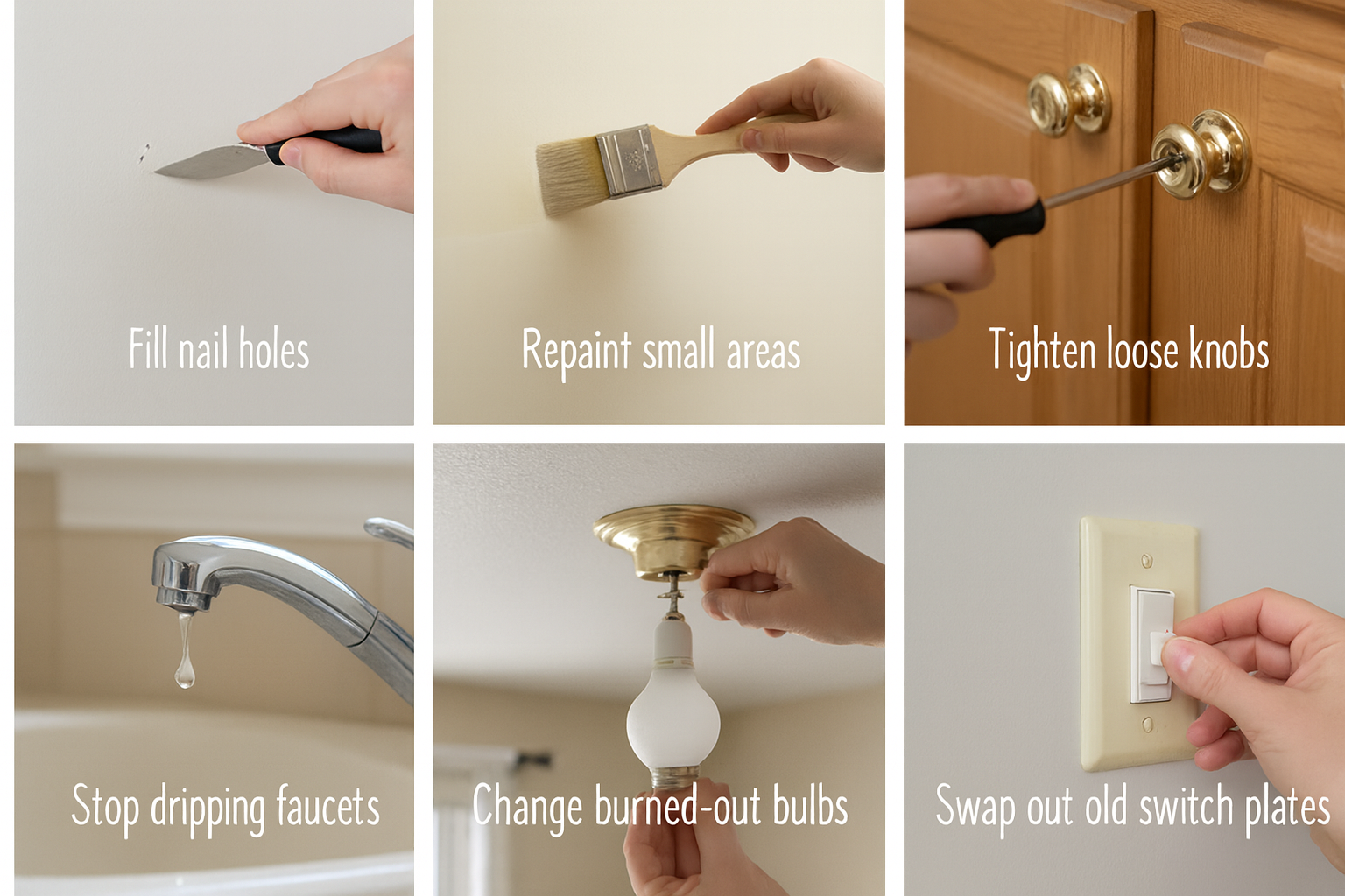 Little issues can leave a big impression. A squeaky door or a scratched baseboard might make buyers think, “If these small fixes are ignored, what else has been overlooked?”