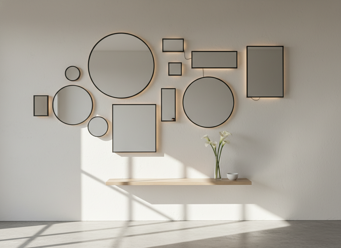A mirror is one of the simplest ways to elevate minimalist wall décor, particularly in rooms that feel small or lack natural light. When placed thoughtfully, it reflects brightness and adds depth without introducing visual clutter. Hanging a mirror opposite a window helps spread daylight throughout the space, while positioning one above a console table or entry bench creates a clean, welcoming focal point. Mirrors also work well on narrow walls that otherwise feel forgotten. Keep the design understated with a simple frame or no frame at all, allowing the reflection itself to do the work.