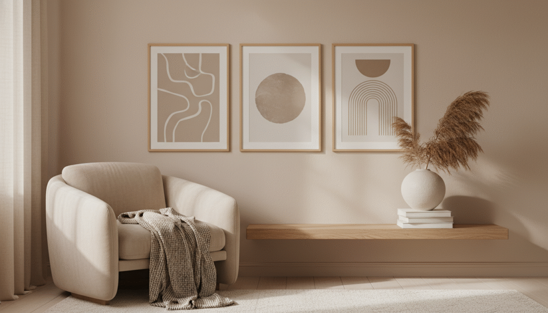 What tends to work against small rooms are tightly packed gallery walls, dark or heavy frames that visually weigh the walls down, and too many competing focal points. When done thoughtfully, minimalist wall décor becomes one of the simplest and most effective ways to make a small space feel larger, lighter, and more comfortable to live in.