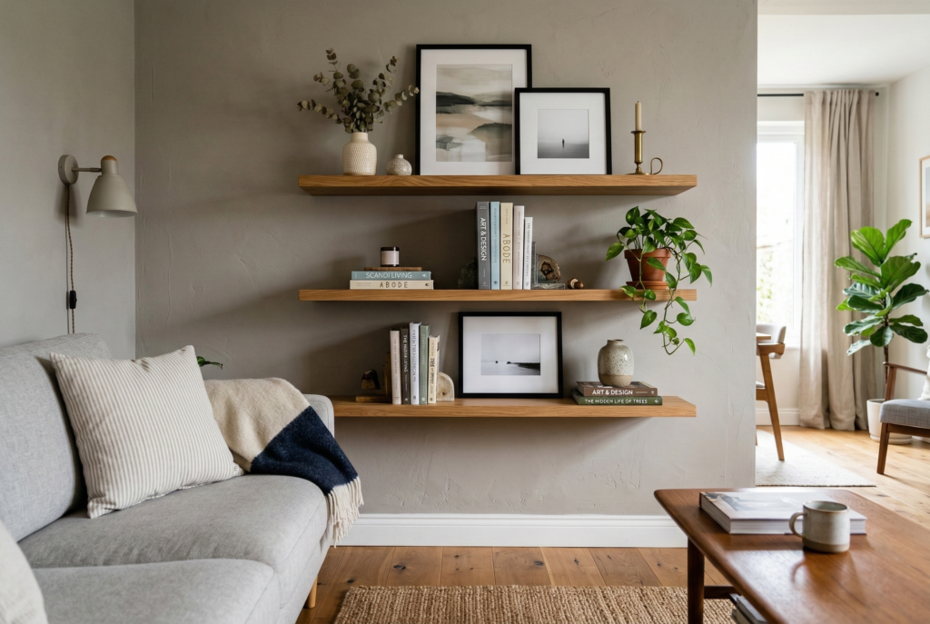 In kitchens, shelves can hold everyday dishes, spices, mugs, or dry goods in attractive jars. In bathrooms, they can store rolled towels, skincare, or extra toiletries. In bedrooms, they can replace bulky nightstands or create storage above a dresser. Even a hallway wall can become useful with a slim shelf for keys, mail, or sunglasses.