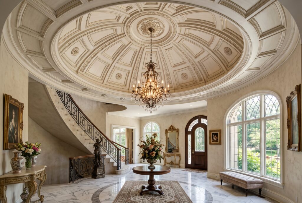 Dome ceilings serve as perfect focal points for grand foyers or circular sitting rooms. When paired with modern, recessed lighting, these structures create a sophisticated and clean aesthetic.