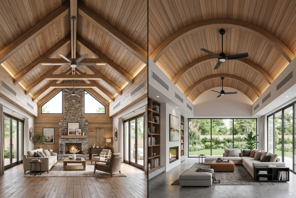 Choosing a style is about more than just height; it’s about the “vibe” and character of the home. Here are several vaulted ceiling ideas for upcoming projects: