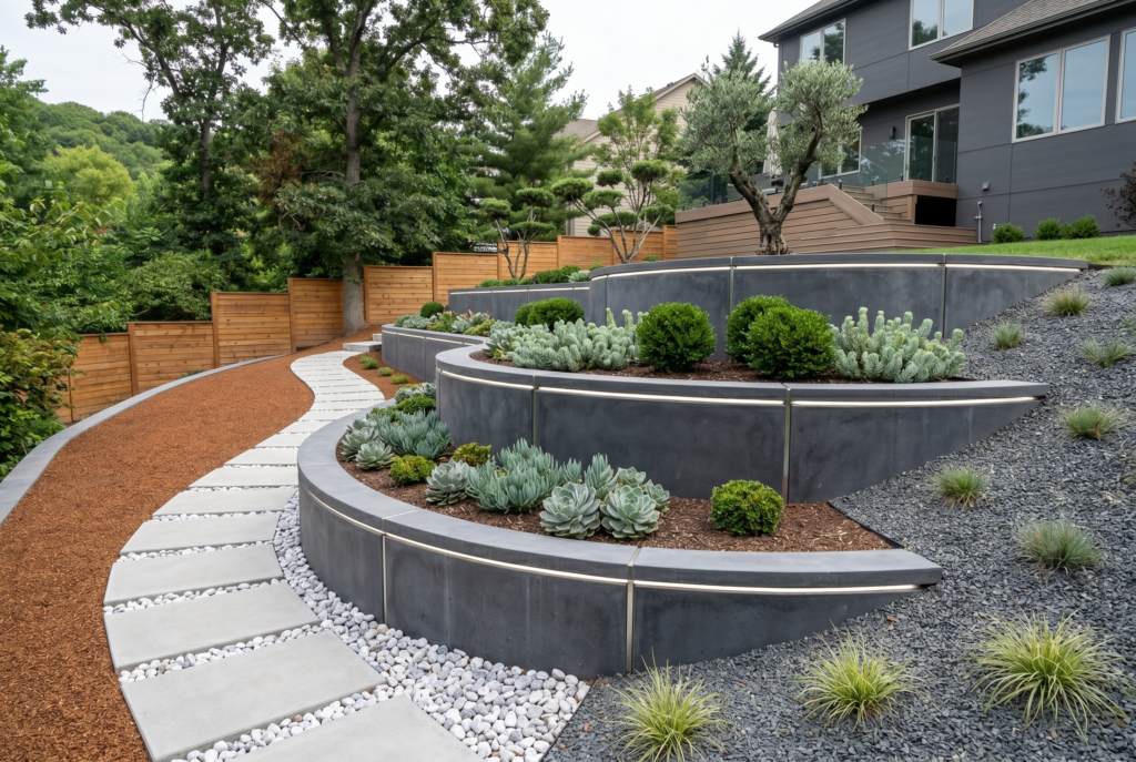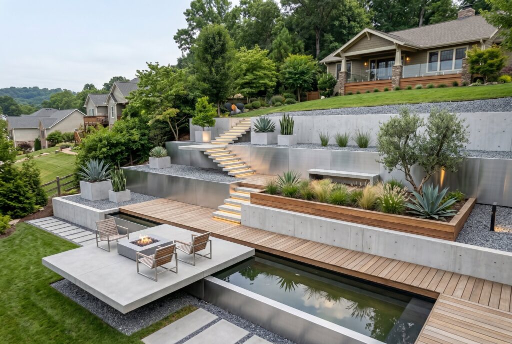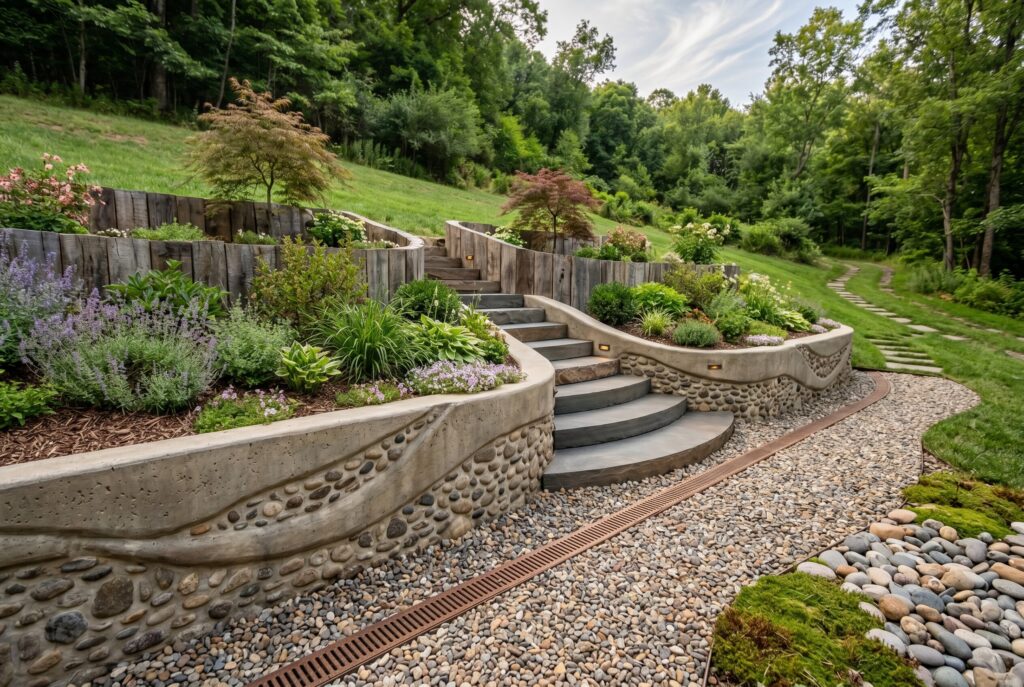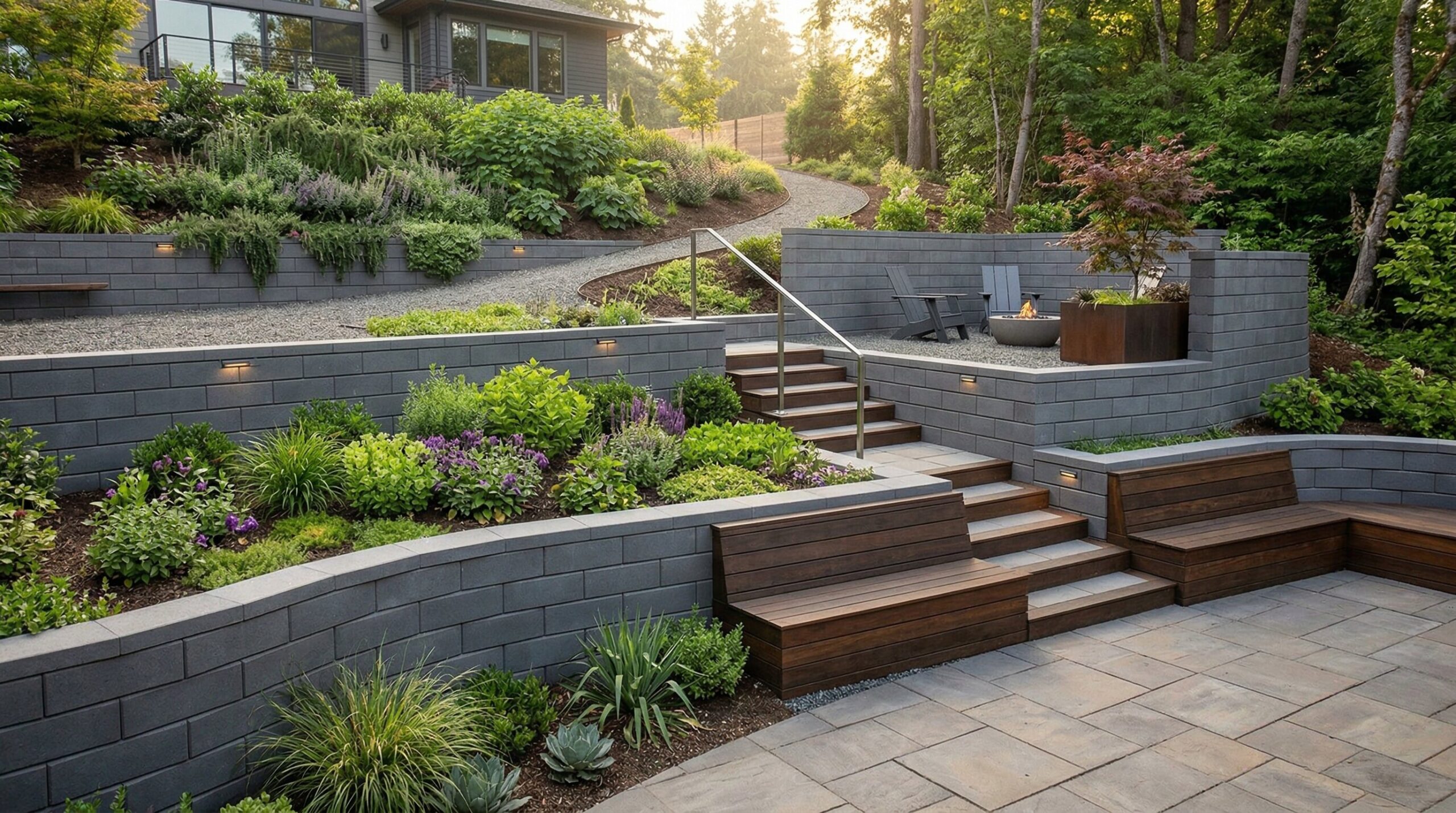 Terracing reduces the pressure on each individual wall and creates multiple flat levels for planting or seating areas. It’s a great way to incorporate retaining wall ideas into a larger landscape design.