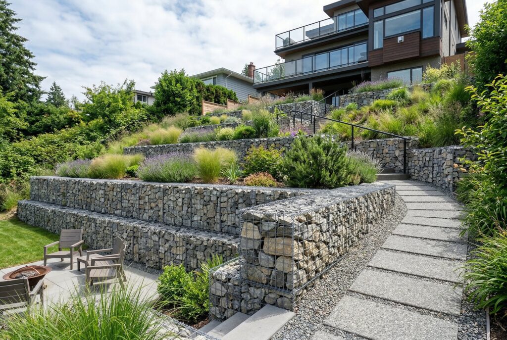 Idea 4: Modern Gabion Baskets & Permeable Hardscaping