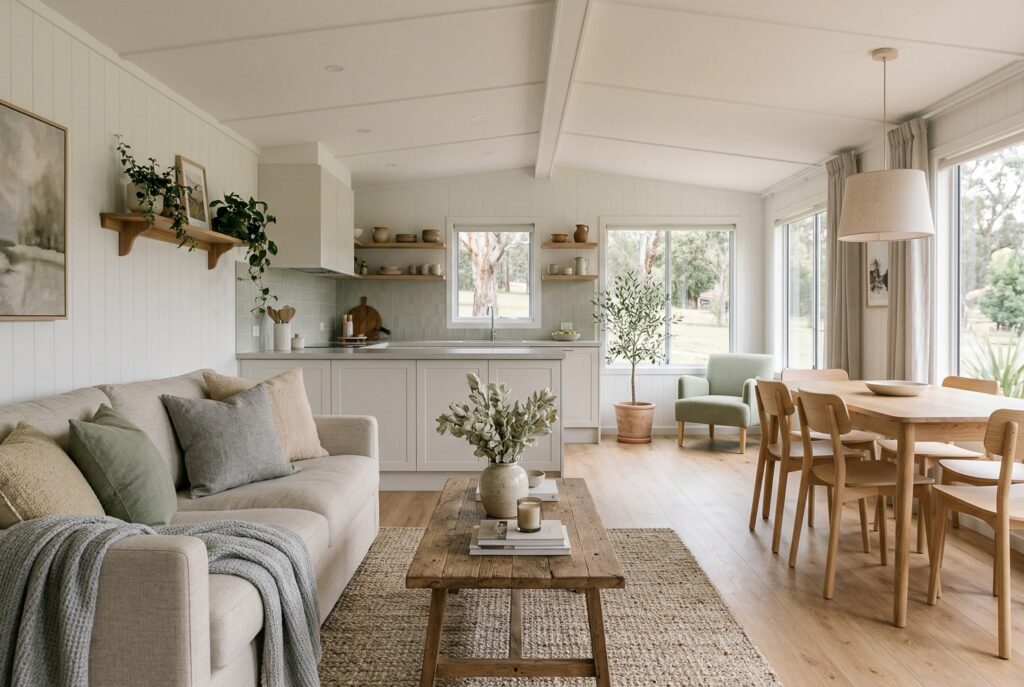 Soft whites, warm neutrals, muted grays, pale greens, and gentle earth tones are common choices because they reflect light well and create a more unified look. That doesn’t mean every room has to feel plain. Texture, wood tones, layered fabrics, and a few deeper accents can still add personality.