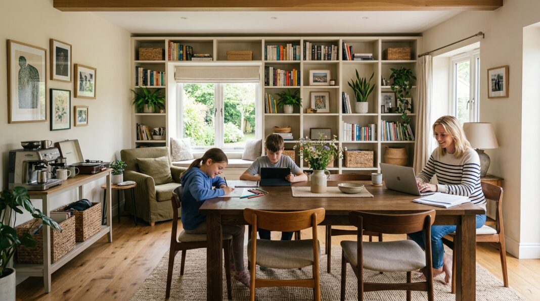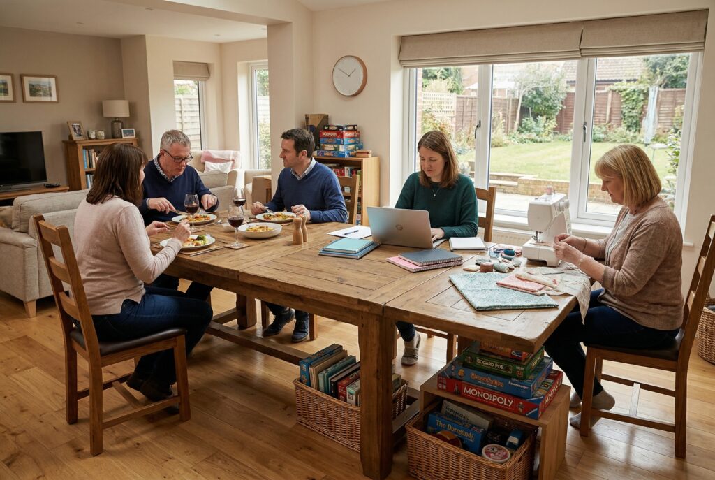 A rectangular table usually works well because it provides enough surface area for several uses at once. Someone can work at one end while another person sets out lunch or sorts mail at the other. In smaller homes, a round or extendable table may make more sense because it improves movement while still offering flexibility when needed.