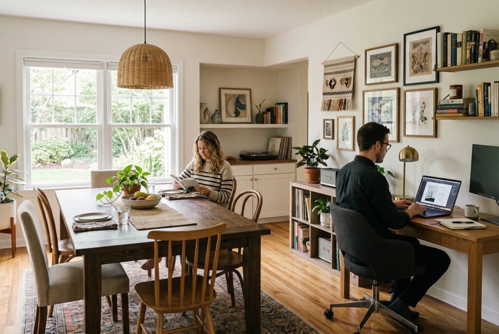 Even small adjustments matter. A bench can create more seating when guests visit and also save space the rest of the week. A compact cabinet can function as both dining storage and a work support station. The more flexible the furniture, the easier the room becomes to live with.