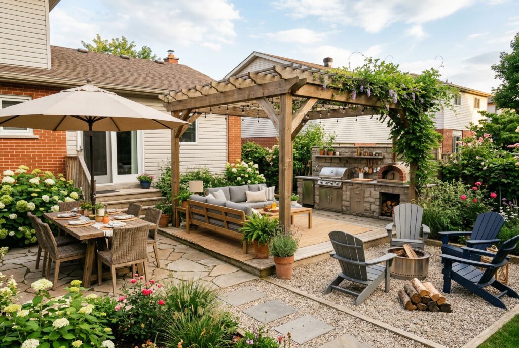 Just like indoor spaces, outdoor areas work better when they have clear zones. A backyard can feel much more intentional when seating, dining, cooking, and play areas each have a defined purpose.