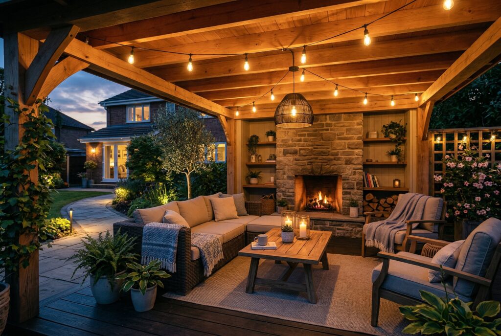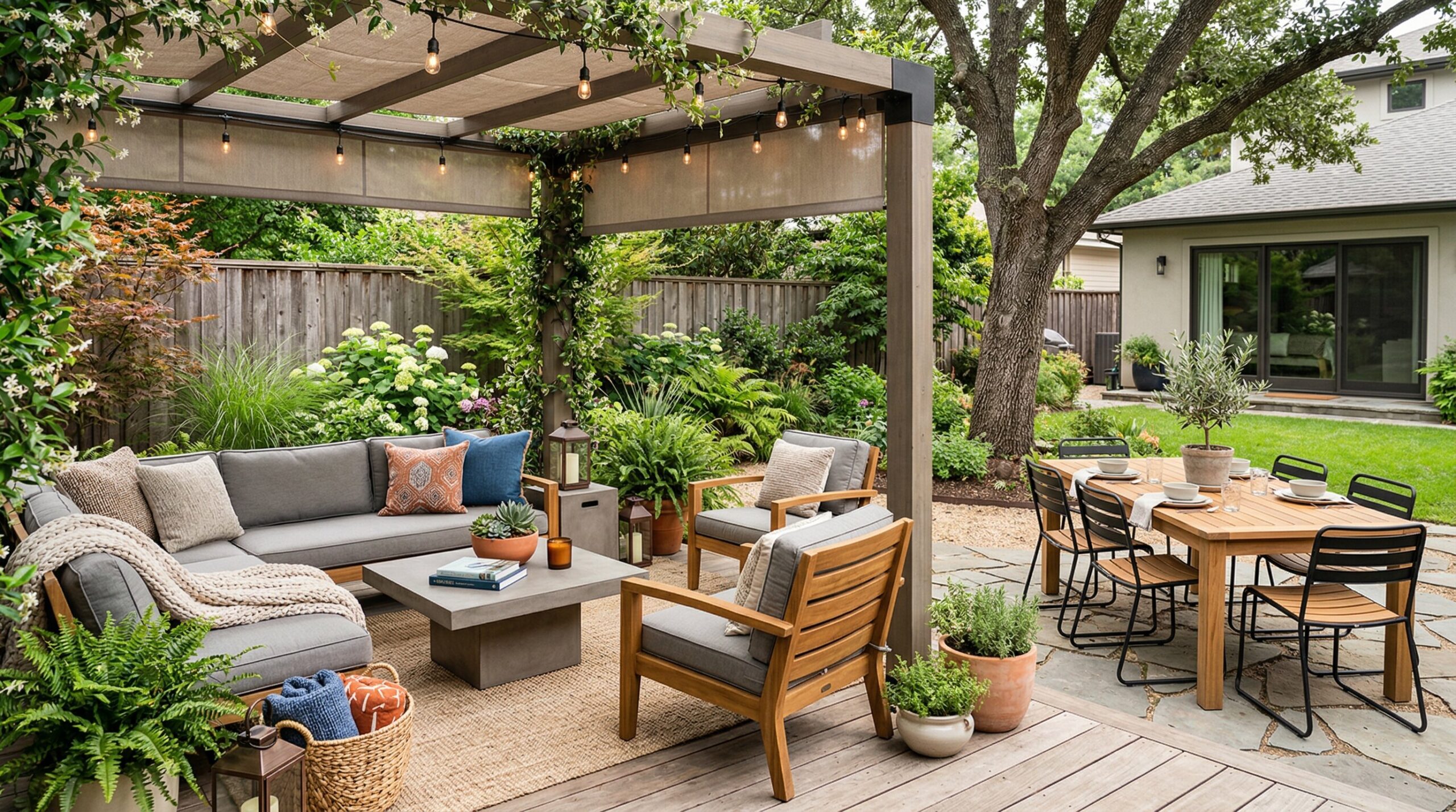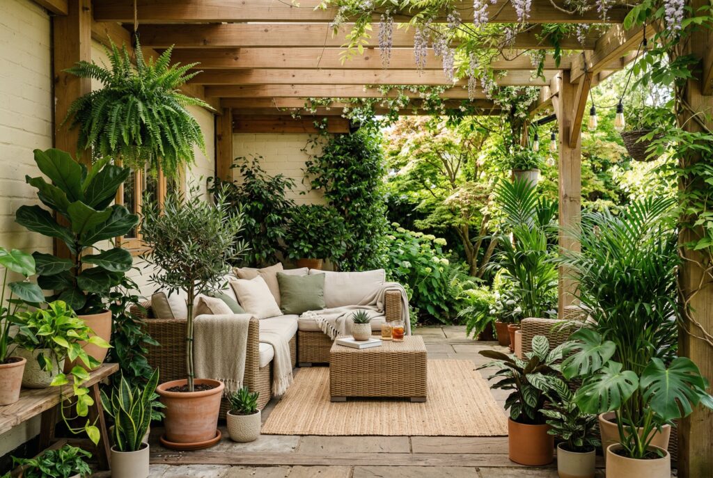 Plant choices should reflect local growing conditions and maintenance expectations. A stylish outdoor room doesn’t require rare or difficult landscaping. It simply benefits from enough natural softness to balance the furniture and hard surfaces.
