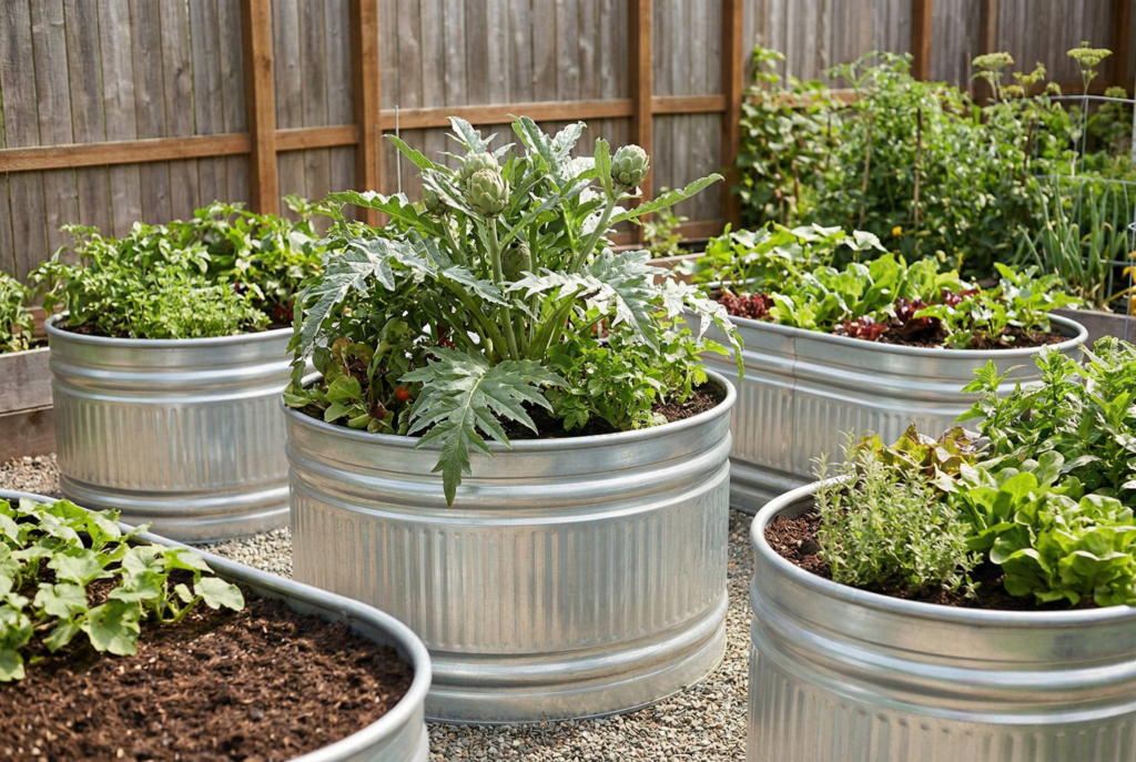 Galvanized tubs are not only stylish but also functional. These beds provide excellent drainage, are easy to move, and are perfect for small spaces.