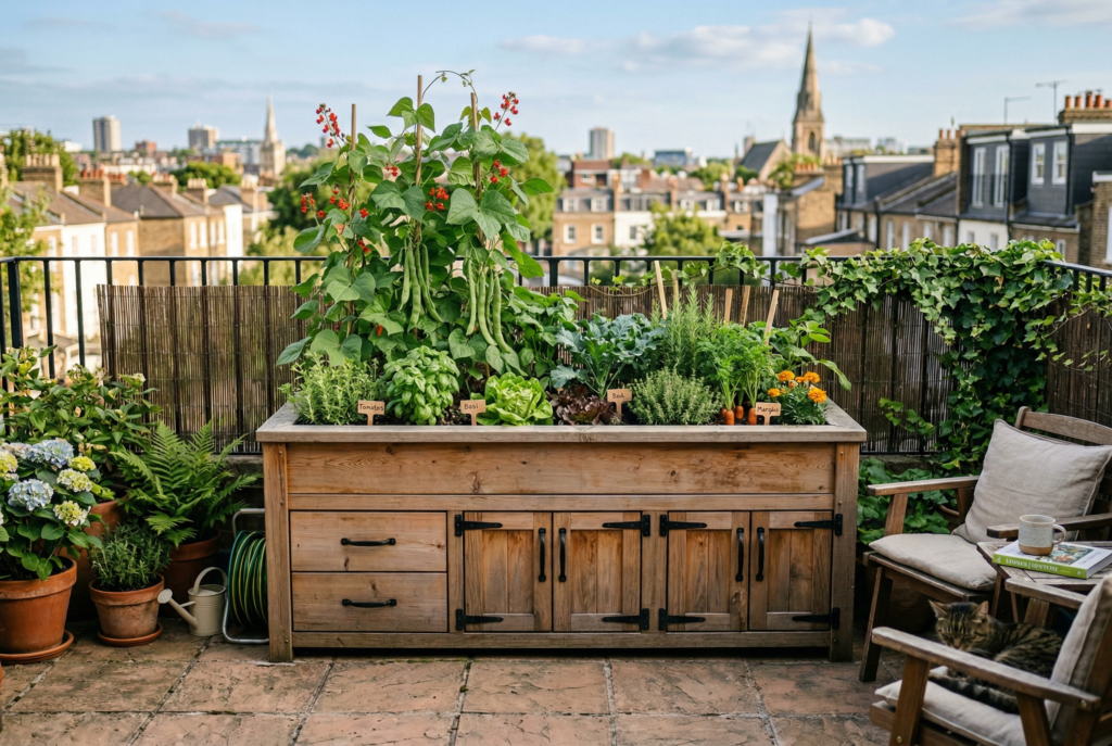 A raised garden bed with built-in storage provides an excellent way to store your gardening tools and supplies right next to your plants. You can add drawers or compartments underneath the bed for easy access to your gardening essentials.