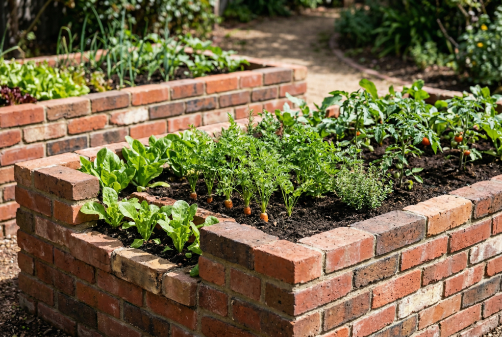 Bricks are a durable material that can create a sturdy, permanent raised garden bed. These beds can be arranged in various shapes, such as rectangular or circular.