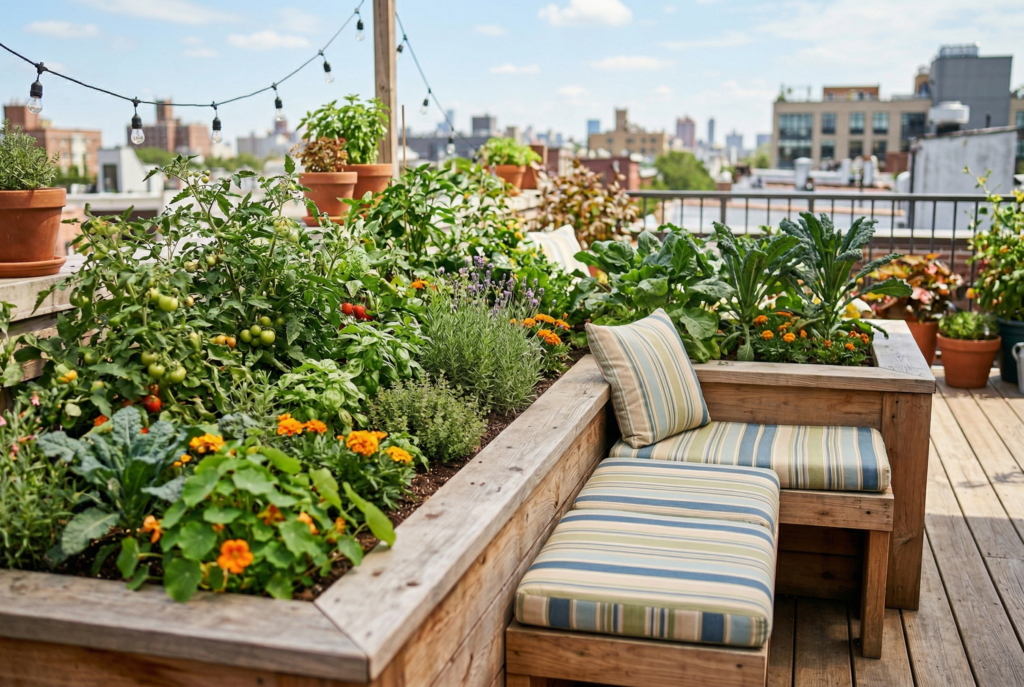 Create a garden and a relaxation spot all in one! Adding built-in seating around your raised garden bed not only gives you a place to relax but also adds a practical and decorative feature to your garden.