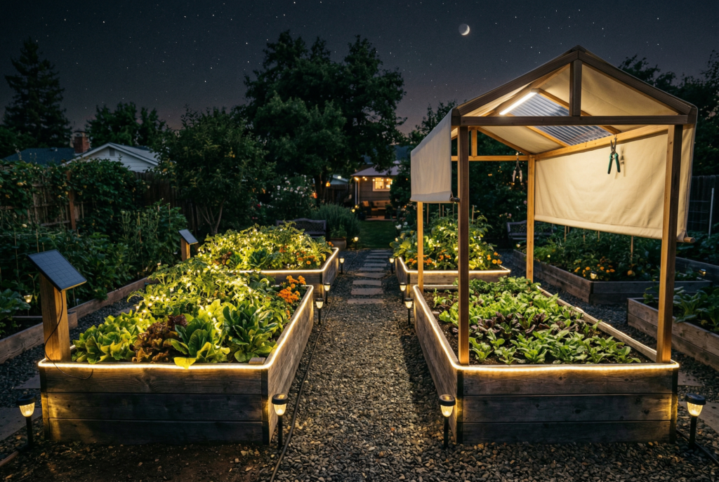 Incorporating lights into your raised garden bed will not only help your plants thrive but will also add ambiance to your garden at night. Solar-powered LED lights are a great option for an eco-friendly and low-maintenance garden.