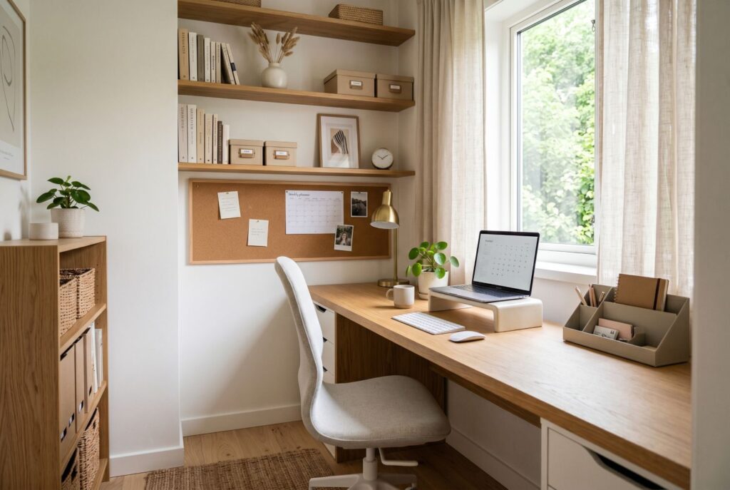 This is also where cute office decor can either help or hurt. A small office can absolutely be charming, but only if the decorative items don’t overwhelm the surface. In tight spaces, too many accessories instantly make the desk feel stressful. The most effective version of cute office decor is tidy, minimal, and grounded in utility.