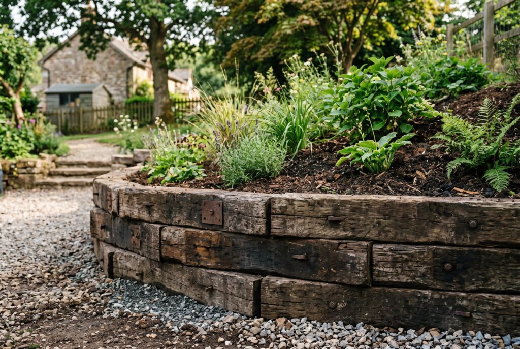 They bring a sense of history and character to a backyard that new lumber simply cannot match. Just be sure to wear heavy gloves when handling them, as they’re often treated with preservatives that make them very durable but also quite messy to move.