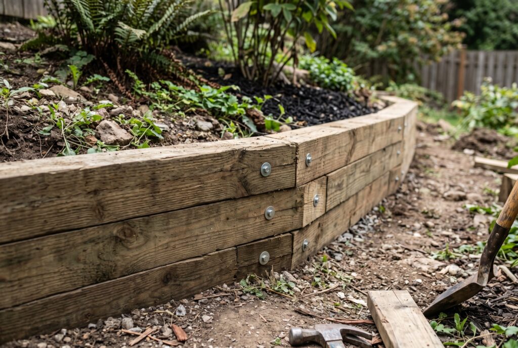 They’re particularly useful for creating sharp, 90-degree corners in contemporary landscaping. To keep them secure, you can drill through the layers and drive long “rebar” spikes into the ground to prevent the wood from shifting over time.