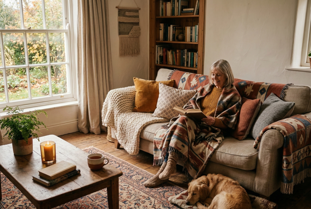This is the most obvious benefit, but it’s still worth saying clearly. Upholstered dining chairs are more pleasant for long meals. Bedroom curtains improve sleep when they block early light. Rugs make bedrooms and living areas feel better underfoot. Throws make a reading corner easier to use on an ordinary Tuesday night, not just in a styled photo.