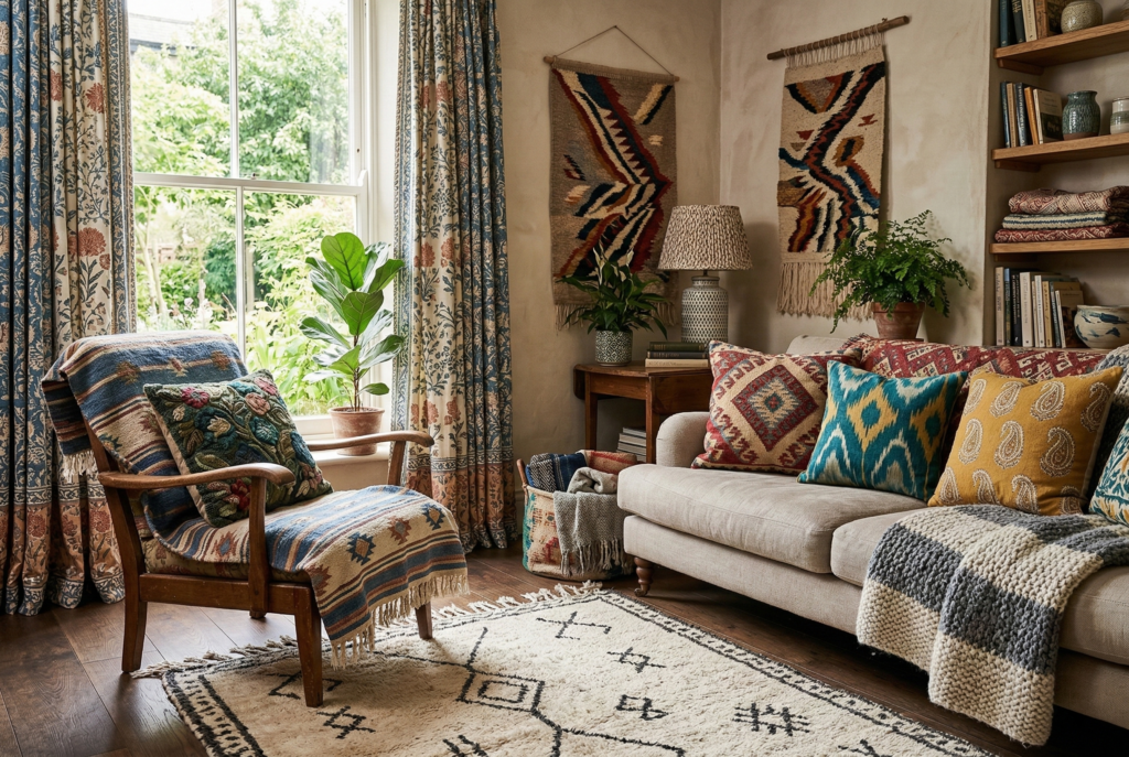 Textile layering works because it builds depth gradually. Instead of relying on one bold item to do everything, it lets multiple elements work together.