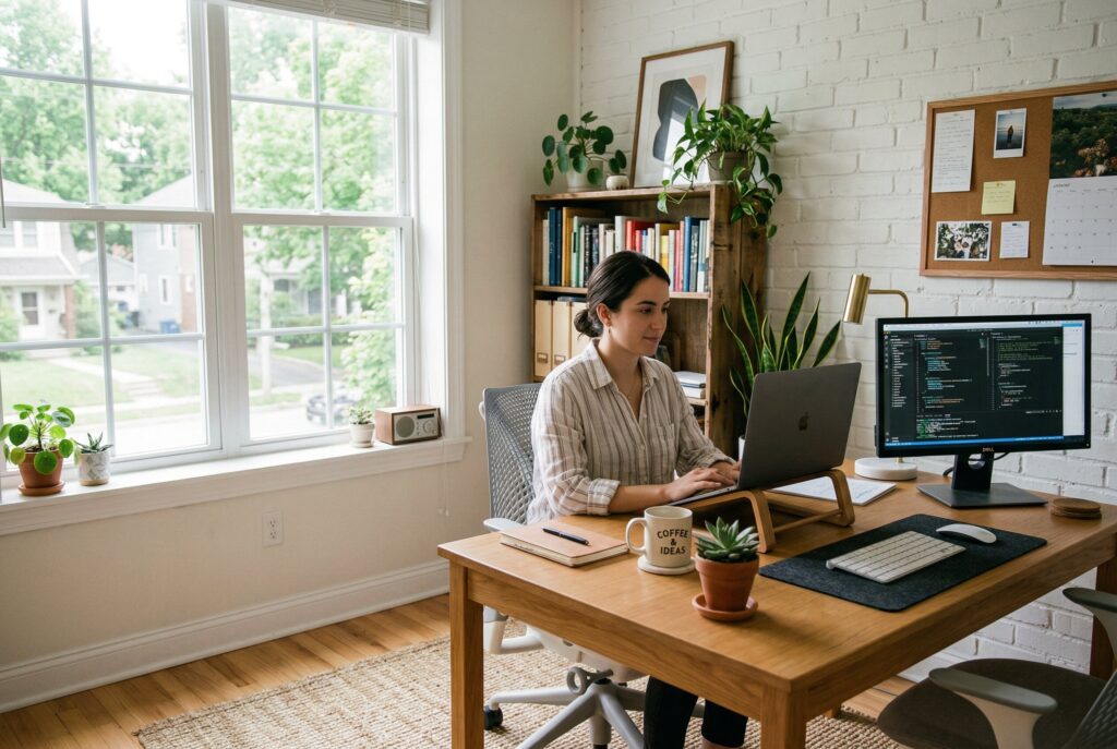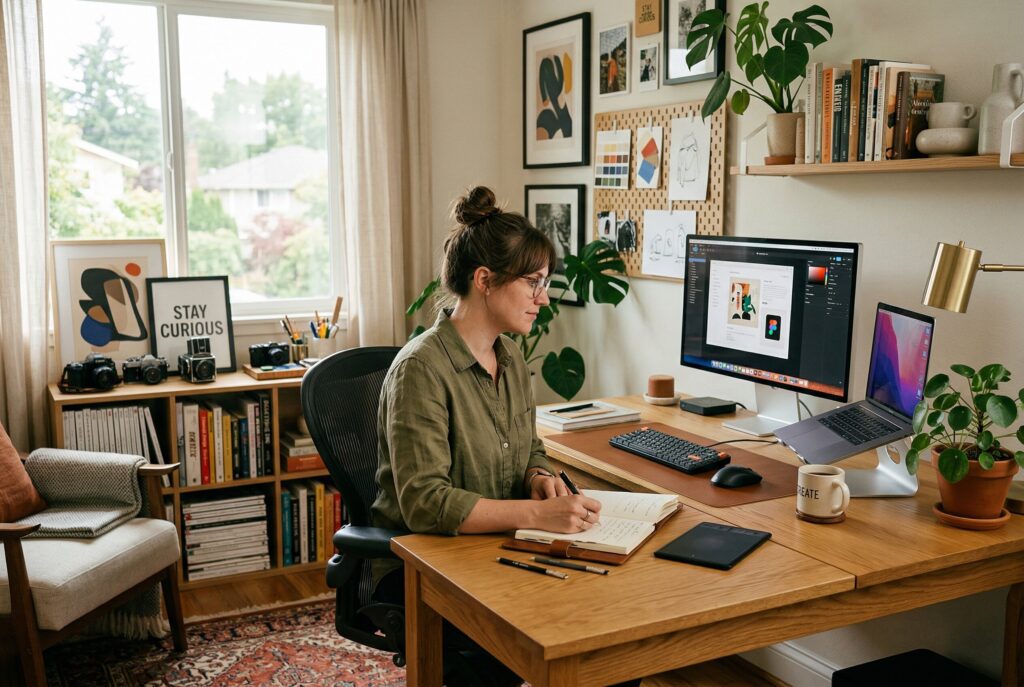 A strong home office set up begins with daily habits. If you spend most of the day on video calls, your background and lighting matter more than sprawling desk space. If you work with paper, samples, or notebooks, storage needs to come first. If your office room doubles as a guest room or study corner, flexibility becomes part of the design.