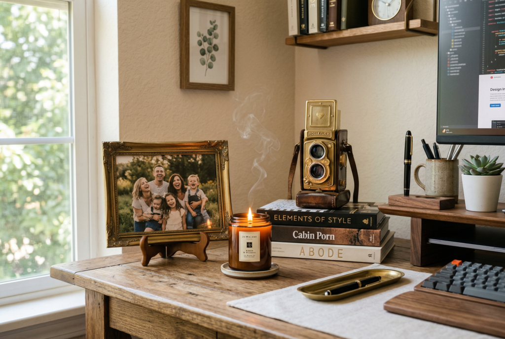 A framed family photo, one favorite candle, a vintage object, or a small stack of design books can all add warmth without making the room feel overly styled. Wallpaper can work beautifully too, especially behind the desk, but it should support the room rather than dominate it. A subtle pattern or grasscloth texture often ages better than something overly trendy.