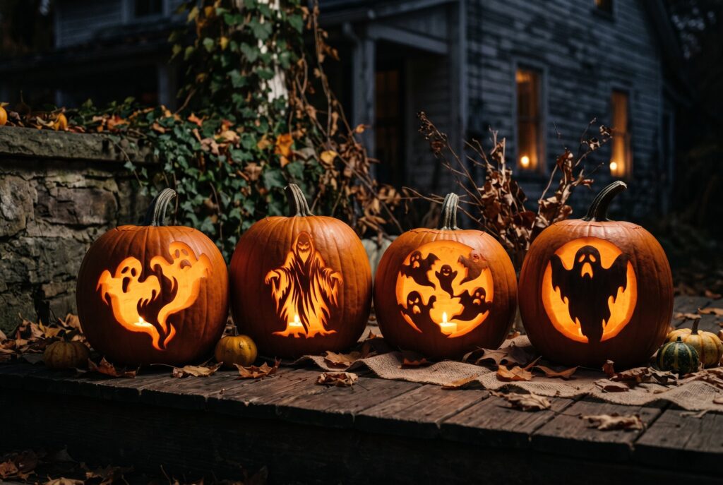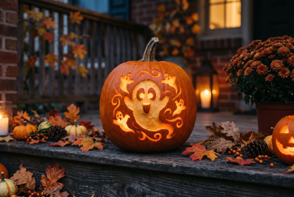 - The “Ghost” Pattern: Instead of one big face, try a ghost pumpkin carving that features dozens of tiny, simple ghosts floating all around the pumpkin.