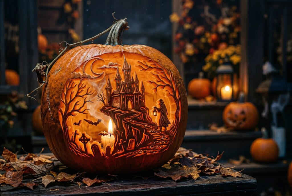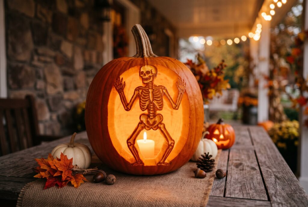 - Skeleton Pumpkin Carving: For those who want something a bit more traditional but still highly detailed, a skeleton hand reaching around the side of the pumpkin is a fantastic visual.