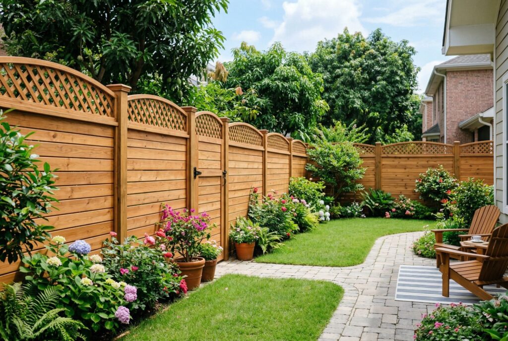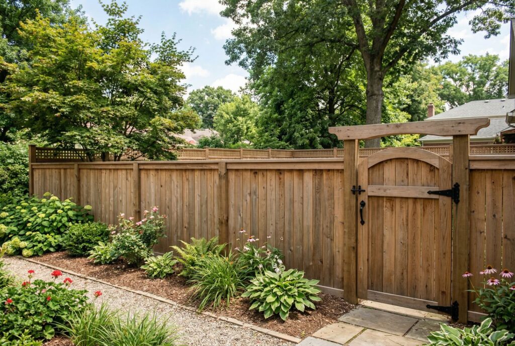 Not all wood performs the same. Cedar is one of the most desirable choices because it resists insects and moisture better than many cheaper alternatives. It also ages beautifully and tends to hold its shape well, which is why cedar is often the go-to option for higher-end wood fence styles.
