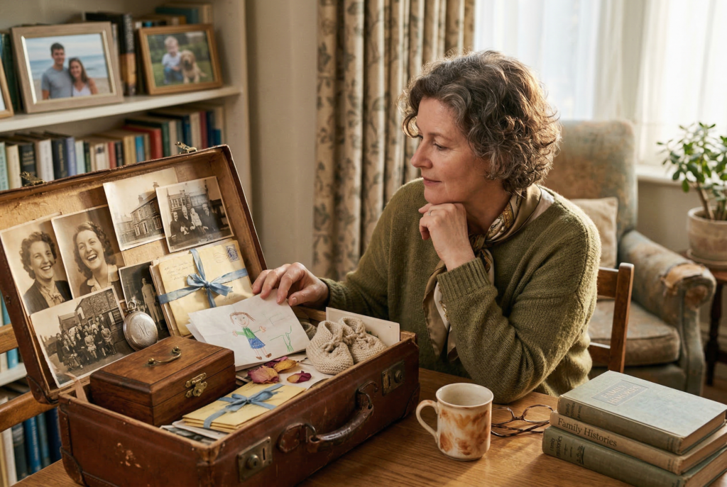 You don’t have to choose between keeping everything and getting rid of everything. A more balanced approach is to create a carefully edited collection of the most meaningful items. This could be one memory box per child, one bin for family keepsakes, or a small set of items from a loved one that genuinely matter most.