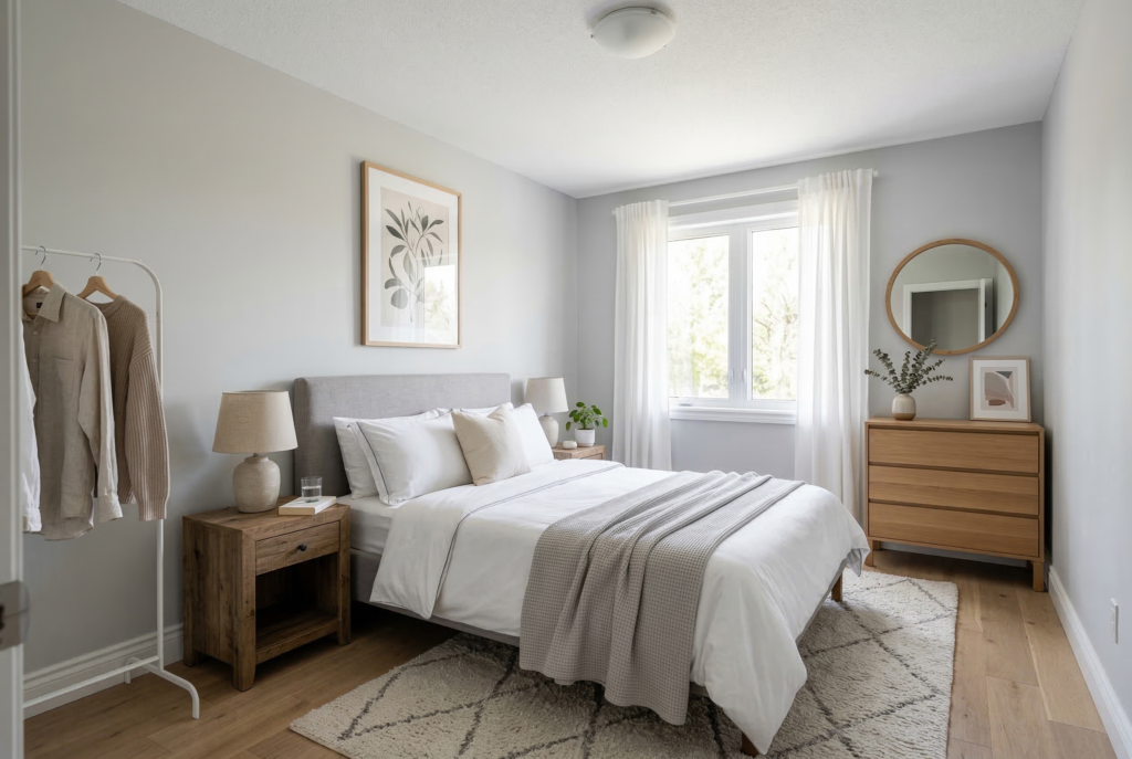 Decluttering the sleep space often improves the atmosphere in a subtle but important way. Clear nightstands, a more organized closet, and fewer items competing for attention can help the room feel quieter. When the bedroom feels calmer, it becomes easier to settle down at the end of the day.