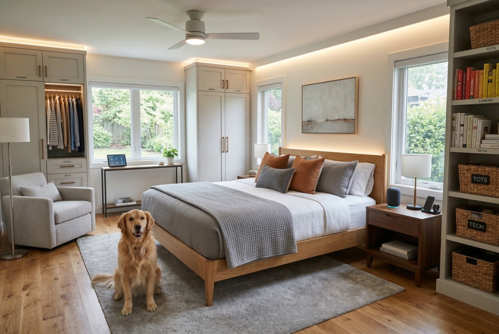 Incorporate smart home devices, like a smart thermostat, voice-controlled assistants (such as Alexa or Google Home), and automated lighting systems. These devices help you save energy, manage tasks more efficiently, and control your home environment with just a few voice commands or app controls.