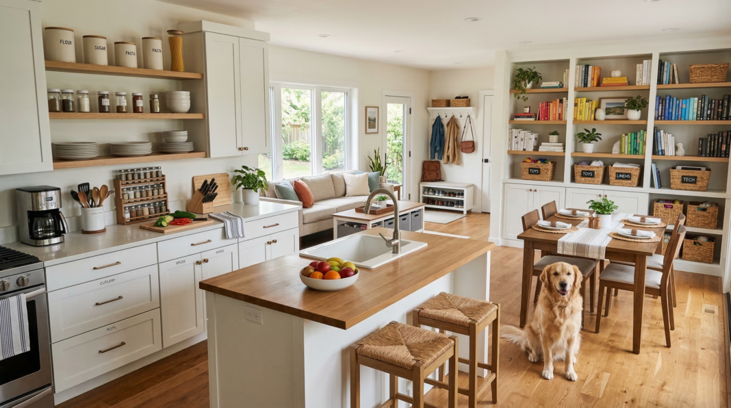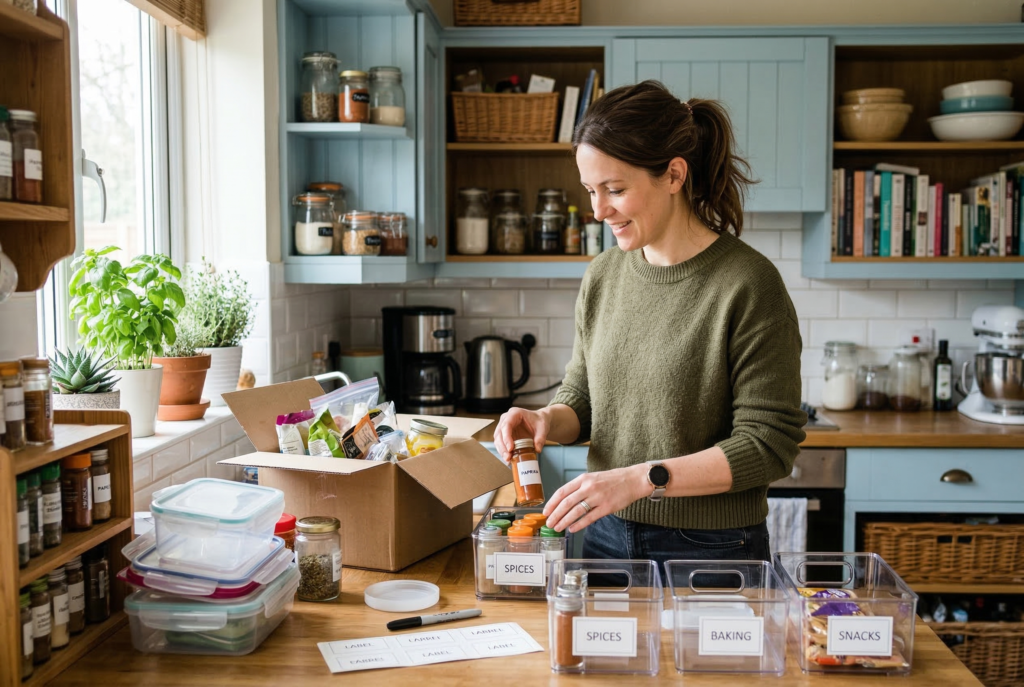 Begin by organizing your pantry and kitchen cabinets. Group similar items together, such as canned goods, baking supplies, or spices, so they’re easy to find when you need them. Use clear storage containers and label them for quick identification. This small change makes a huge difference when you’re in a rush and looking for ingredients.