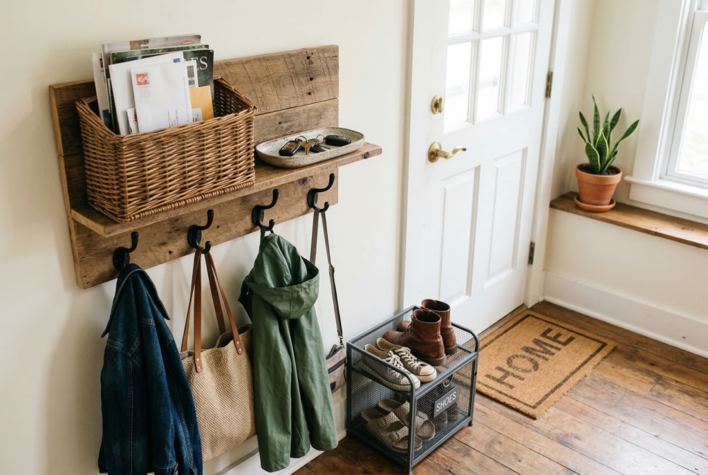 Simple drop zones can solve a surprising number of daily frustrations. A basket for mail, hooks for bags and jackets, a tray for keys, and a small bin for shoes near the entry can help contain the mess before it spreads. These systems don’t need to be elaborate. They just need to be easy enough to use every day without extra effort.