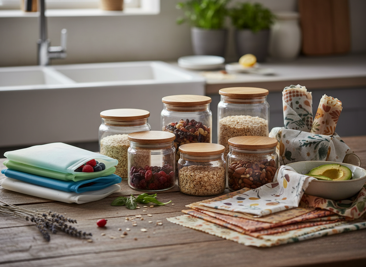 Plastic wrap and disposable bags create constant waste and rarely preserve food well. Instead, use permanent storage such as glass containers with lids, reusable silicone bags, or beeswax or plant-based wraps. Choosing the right food storage containers helps keep food fresher, improves visibility, and prevents waste.