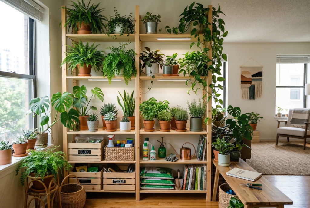 Vertical gardening is an excellent solution for maximizing space. Install shelves along walls, or use wall-mounted planters to create a garden that doesn’t take up floor space. You can also use a vertical garden tower to grow herbs and small vegetables in a compact area.