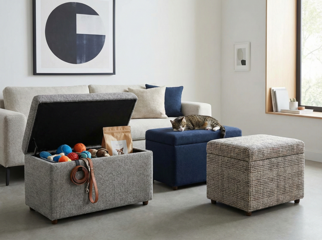 In small spaces, multi-functional furniture can make a huge difference. Look for furniture that serves more than one purpose, such as storage benches, ottomans, or coffee tables that offer hidden storage for pet supplies.