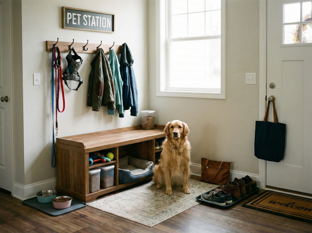The entryway is a high-traffic area where pet supplies often get tossed. By creating a command center, you can keep your pet’s gear organized and easily accessible when heading out for walks or runs.