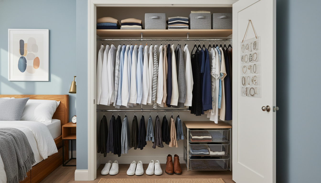 Consider adding over-the-door organizers for shoes, scarves, or accessories. These organizers can hold multiple items, keeping them accessible without taking up additional space in your closet. You can also install hooks on the back of the door to hang hats, bags, or coats.