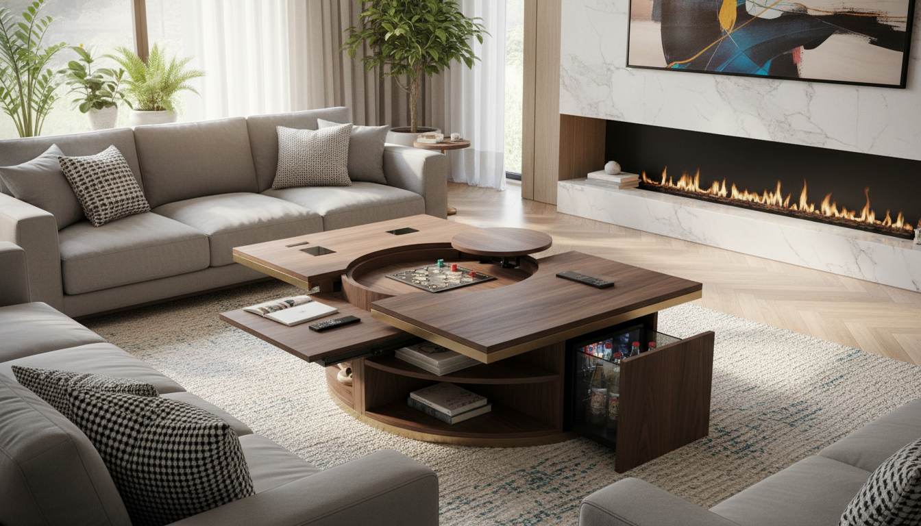 This hidden storage will keep your coffee table surface clear, while still allowing you to store essentials that might otherwise create clutter. It’s a great way to add both functionality and cleanliness to your living room setup.