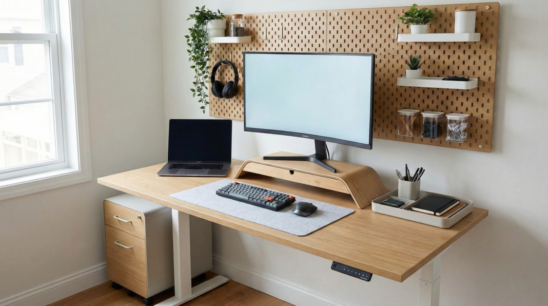 An organized desk is about where things go and also about how comfortable your setup is. A comfortable, ergonomic workspace allows you to work efficiently without physical strain or discomfort. Good posture is essential for productivity, and a poor setup can quickly lead to back, neck, or wrist pain.