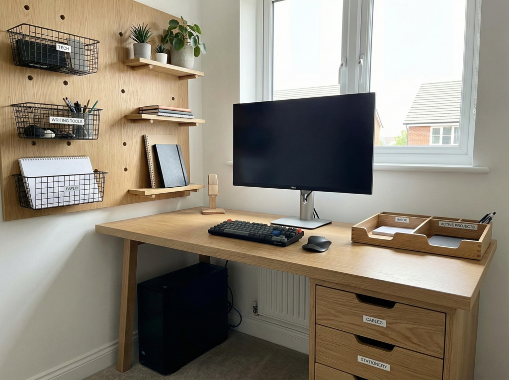 Once the clutter is gone, it’s time to set up your workspace with purposeful organization. The key is to keep everything you use for specific tasks grouped together. Having designated zones will make it easier to access your tools, paperwork, and other supplies without wasting time.