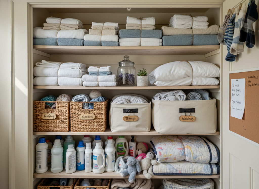 - Quarterly reviews: Periodically go through your linens to remove worn-out items and rotate seasonal bedding to keep your closet fresh and organized.