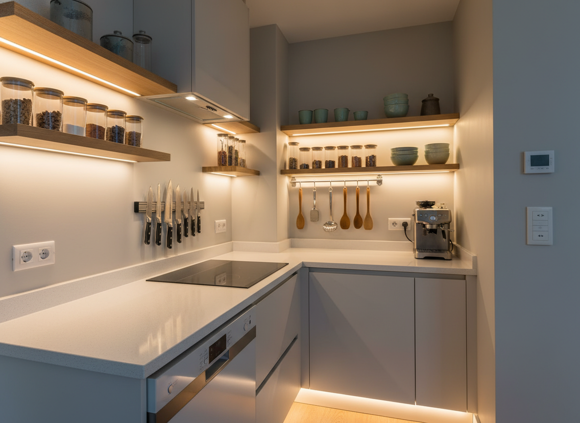 Small kitchens often don’t take full advantage of vertical space. While applying this method, you not only save counter and cabinet space but also keep daily essentials within easy reach.