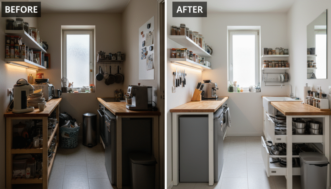 Here are 10 practical small kitchen storage solutions, renter-friendly options, and organization tricks inspired by the everyday problems people face. Let’s explore ideas that solve real issues.