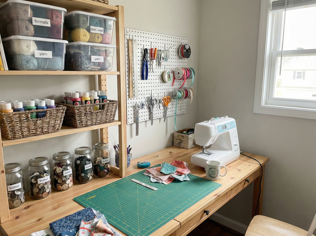 Instead of spending money on expensive organizational tools, consider repurposing household items to organize your supplies. For example, mason jars make excellent storage for buttons, beads, or paintbrushes. Old shoeboxes can be used to organize fabrics, ribbon spools, or even supplies for kids’ crafts. Repurposing items not only saves you money but also adds a personal touch to your craft space, making it uniquely yours.