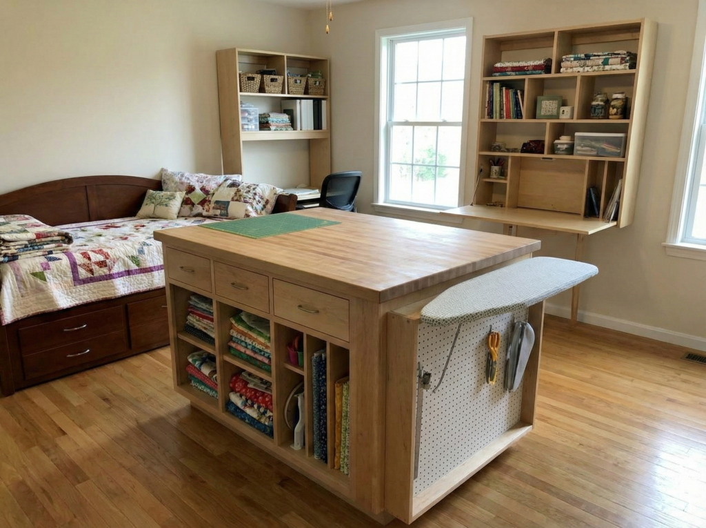 If you’re working with limited space, consider using multi-use furniture to maximize your craft corner. Opt for a storage bench, which can function as both a seat and a place to store fabric or tools, or a convertible desk that doubles as both a workspace and storage area.